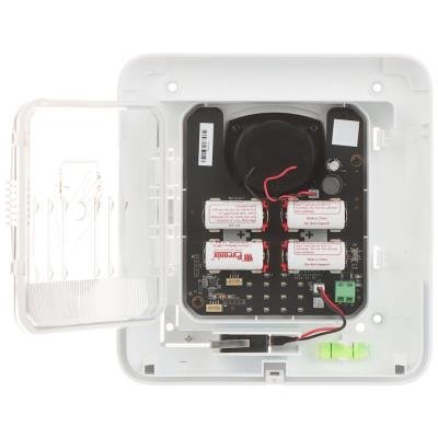 Bezdrátová siréna s akustickým výkonem 110 dB a se světelnou signalizací alarmu v modré barvě. Dosah přenosové frekvence je až 1600 m v otevřeném prostoru. Díky krytí IP65 je vhodná pro venkovní použití. Napájení je realizováno pomocí 4× CR123A baterie s výdrží až 3 roky.