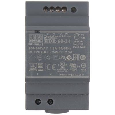 Zdroj, napájecí, 60W, DC 24V, max. 2,5A, vstup AC 85–264V, DIN, pro DS-KAD706, DS-KAD706S, DS-KAD704