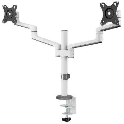Držák, VESA, stolní, pro 2 ploché monitory, úhlopříčka 17"–27", náklon 120°, otáčení 180°, rotace 360°, nosnost 16kg, bílý