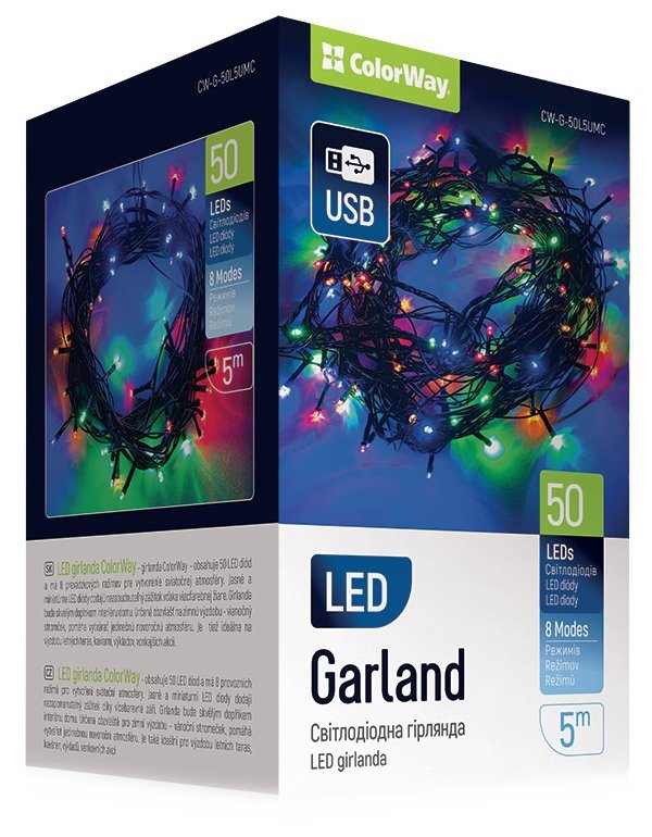 ColorWay LED řetěz má 50 LED diod a 8 režimů provozu pro slavnostní atmosféru. Nenápadný, průhledný kabel a miniaturní LED diody dodávají vzdušnost a příjemné pocity díky vícebarevné záři. Řetěz bude skvělým doplňkem interiéru domu. Vynikat bude zejména na vánočním stromku, pomáhá dotvořit jedinečnou sváteční atmosféru. Ideální pro zdobení letních teras, kaváren, výkladů a venkovních akcí.