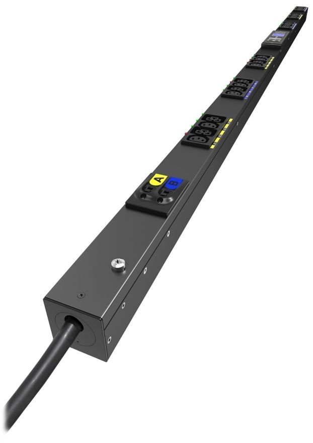 Spínaný rozvaděč, 0U, vstup: 309 32A 1P, výstup: 12× C13, 12× C39, 3m kabel, svislá montáž, černý