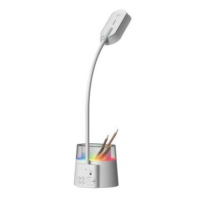 Stolní lampička, LED, 10W, teplá–studená bílá + RGB podsvícení, 350lm, držák na tužky, LED displej, hodiny, bílá