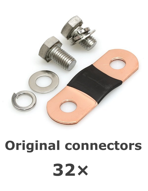 Důležitou součástí každého bateriového modulu je propojení mezi články. Originální měděné konektory jsou vyrobeny z několika tenkých vrstev, což zajišťuje ideální pružnost a vodivost.