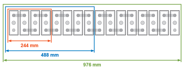 16 článků (48 V) – Celková kapacita 4320 Wh / Hloubka 976 mm / Hmotnost 48 kg