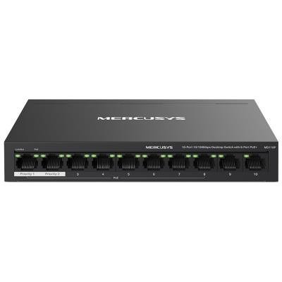 10portový switch s podporou PoE+ 802.3af/at v kompaktním provedení s podporou Auto-Negotiation a Auto-MDI/MDIX. Rychlost přenosu dat činí až 100 Mb/s při Half Duplex a až 200 Mb/s při Full Duplex spojení.