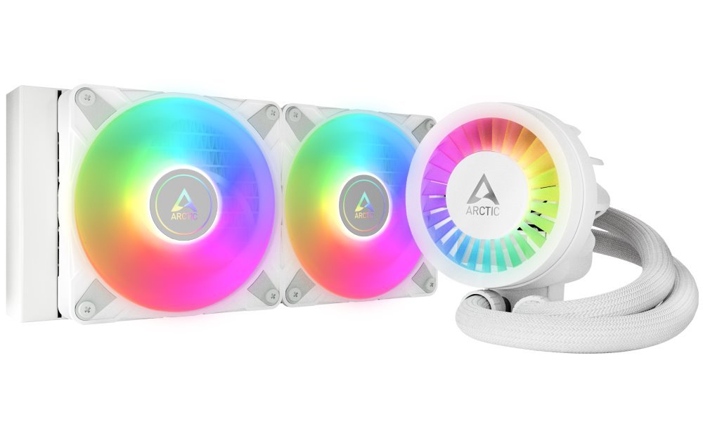 Vodní chladič určený pro chlazení široké škály procesorů. Vyznačuje se vysokou kvalitou, výkonem a spolehlivostí. Vybaven je dvěma 120mm ventilátory ARCTIC P12 PWM PST A-RGB, které disponují kvalitními FDB ložisky zajišťujícími dlouhotrvající bezproblémový chod. Zajisté potěší také adresovatelné RGB podsvícení ventilátorů i čerpadla. Odolné opletené hadice jsou dlouhé 450 mm a díky dostatečně širokému průměru zaručují plynulý průtok chladicí kapaliny.