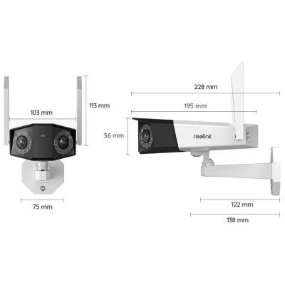 8megapixelová panoramatická IP kamera typu bullet nabízí dva snímače 1/2,7" CMOS s celkovým rozlišením 4608 × 1728 obrazových bodů a úhlem záběru 180° (horizontálně). V případě zhoršených světelných podmínek či tmy je přítomen IR přísvit do vzdálenosti až 30 m a bílý LED přísvit. Připojení lze jednoduše realizovat pomocí RJ-45 portu, nebo bezdrátově pomocí Wi-Fi. Díky aplikaci Reolink lze sledovat dění v domácnosti či jiných prostorech 24 hodin denně, 7 dní v týdnu odkudkoli skrze váš smartphone. Kamera navíc disponuje zabudovaným mikrofonem a reproduktorem. Díky voděodolnosti dle IP66 nabízí jak vnitřní, tak i venkovní možnost použití.