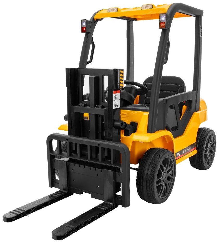 Vozítko pro děti, 3–8 let, vysokozdvižný vozík, elektrický, rychlost až 5km/h, dojezd 5km, nosnost 30kg, žluté