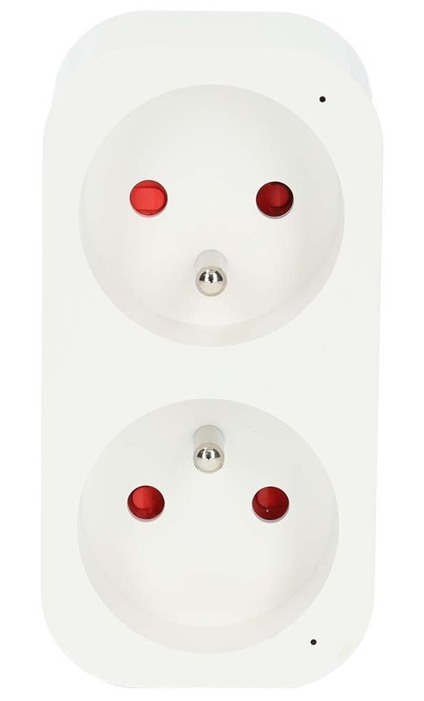 Zásuvka, pro chytrý dům, dvě zástrčky, 16A, 3680W, typ E, měřič výkonu, ovládání přes aplikaci, podporuje Android a iOS, IP21, bílá