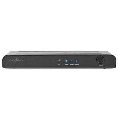 HDMI switch/přepínač 3 : 1 umožňuje, aby tři HDMI zařízení sdílela jediné HDMI výstupní zařízení (obrazovku). Výběr zdroje probíhá stiskem tlačítka nebo pomocí dálkového ovládání. Zařízení podporuje datový tok 18 Gbps, 4K Ultra HD rozlišení, 3D obraz a technologii HDCP 2.2. Současně také zesiluje HDMI signál. K napájení slouží přiložený napájecí adaptér.