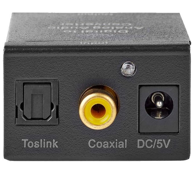 Tento digitálně-analogový audio (DAC) převodník s kovovým pouzdrem je vhodný pro převod digitálního zvukového signálu na analogový zvukový signál. Díky tomuto převodníku můžete připojit zařízení s optickým výstupem TosLink nebo koaxiálním výstupem RCA (S/P-DIF) k zesilovači/přijímači s analogovým stereofonním vstupem. Převodník je navíc vybaven sluchátkovým konektorem. O správné funkčnosti budete vědět díky indikační LED. Dodává se s napájecím adaptérem (5 V / 1 A).