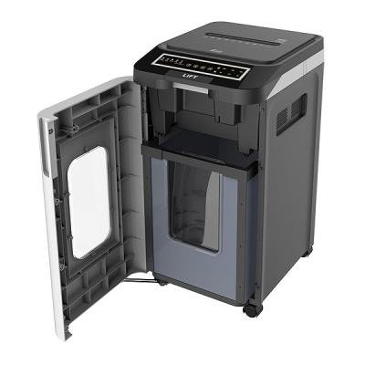Kvalitní skartovací stroj s automatickým podavačem umožňuje postupné skartování až 350 listů. Možná je i přímá skartace až 11 listů. Je vhodný pro skartaci dokumentů o šířce až 240 mm. Stroj je standardně vybaven automatickým systémem start/stop hlídaným foto buňkou, LED displejem, zpětným chodem a pohotovostním režimem proti přetížení stroje. Příležitostně lze skartovat sešívací svorky, sponky, CD i kreditní karty. Lehce vyprázdnitelná odpadní nádoba má objem 53 l. Praktická pojezdová kolečka usnadňují manipulaci.