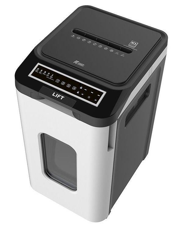 Kvalitní skartovací stroj s automatickým podavačem umožňuje postupné skartování až 350 listů. Možná je i přímá skartace až 11 listů. Je vhodný pro skartaci dokumentů o šířce až 240 mm. Stroj je standardně vybaven automatickým systémem start/stop hlídaným foto buňkou, LED displejem, zpětným chodem a pohotovostním režimem proti přetížení stroje. Příležitostně lze skartovat sešívací svorky, sponky, CD i kreditní karty. Lehce vyprázdnitelná odpadní nádoba má objem 53 l. Praktická pojezdová kolečka usnadňují manipulaci.