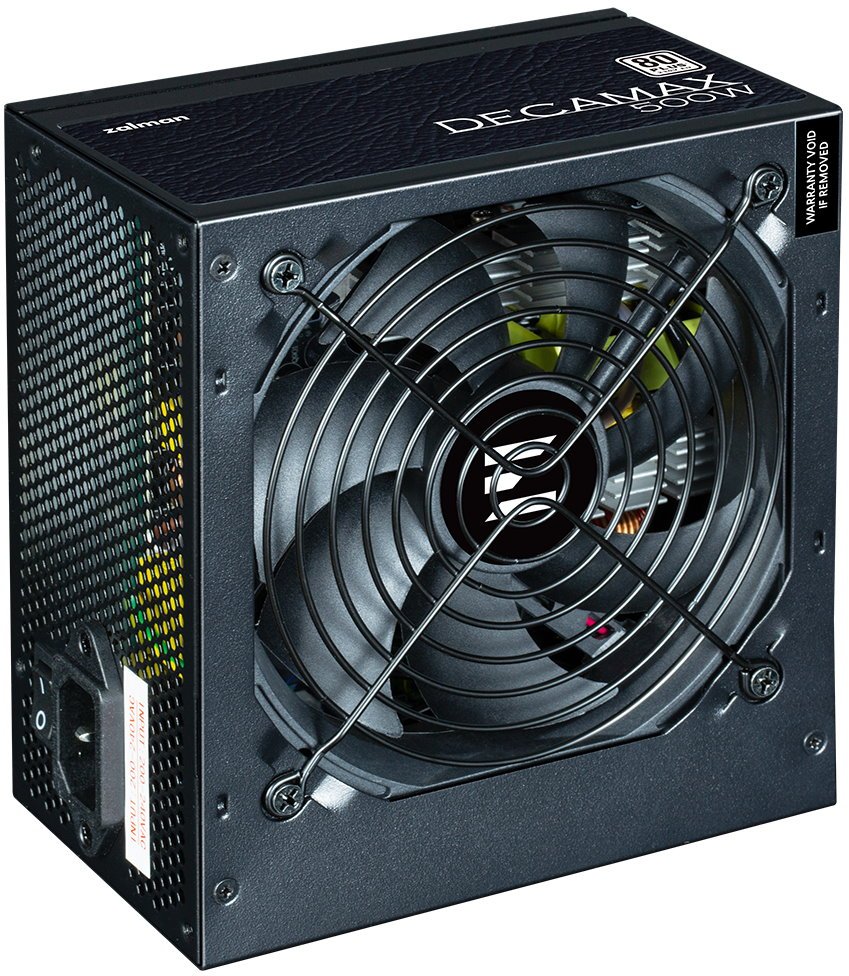 Napájecí zdroj ZALMAN Decamax 500 W je vybaven 120mm ventilátorem, který se postará o bezpečné teploty při standardním provozu i zvýšené zátěži. Zdroj dosahuje vysoké účinnosti dle certifikace 80PLUS Standard a obsahuje komplexní ochranu proti přepětí, přetížení nebo zkratu.