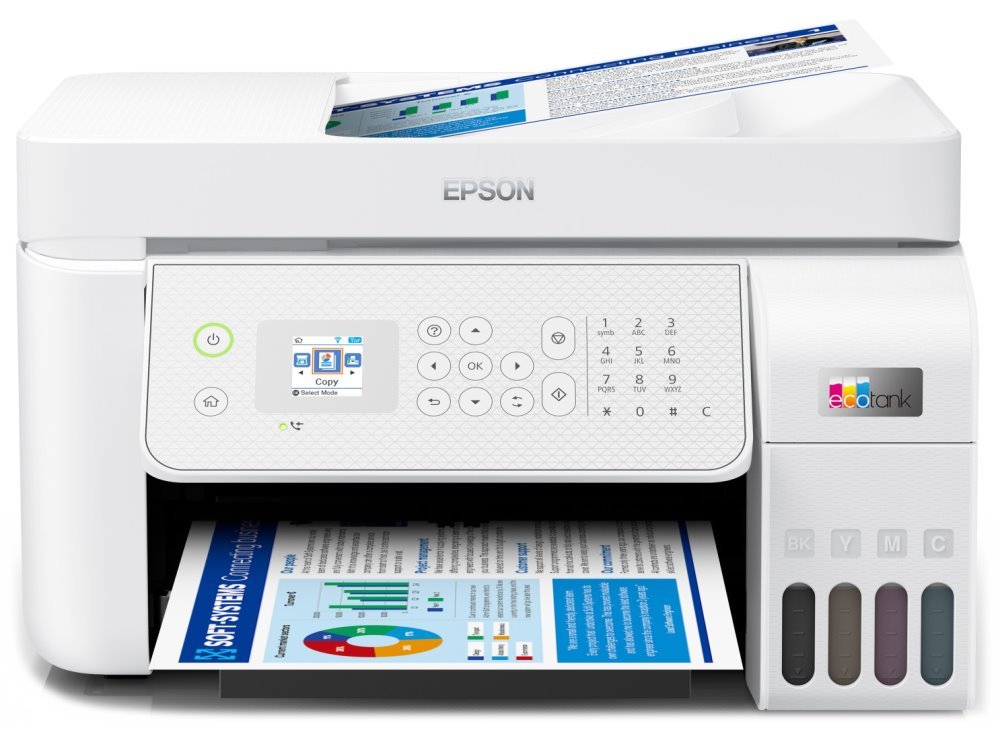 Barevná multifunkční tiskárna Epson EcoTank L3270, která v sobě integruje také kopírku, skener a fax, a přesto si uchovává kompaktní rozměry. Vyznačuje se zvýšenou úsporou nákladů, a tak je vhodná především pro každodenní domácí tisk. Inkoustové nádržky podporují mimořádně vysokou kapacitu a díky systému je doplňování inkoustu jednoduché a bez rizika potřísnění. Technologie tisku Heat-Free s Micro Piezo je navržena s ohledem na dlouhou životnost a kvalitní tisk při nižší spotřebě energie. Dokumenty pak dokáže produkovat tempem až 10 stran za minutu.