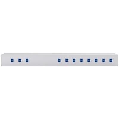 Porty: 8× LC/UPC (1450–1590 nm), 1× LC/UPC komunikační port, 1× LC/UPC pro monitoring, 1× LC/UPC rozšiřující port
