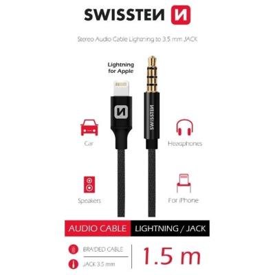 SWISSTEN TEXTILE Lightning na 3,5mm jack 1,5m černý