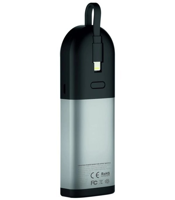 Powerbanka 2 v 1 s kapacitou 6700 mAh je vybavena bezdrátovou nabíječkou pro Apple Watch, USB výstupem a integrovaným kabelem s konektorem Lightning, který splňuje certifikaci MFi (Made For iPhone/iPad/iPod). Nabíjet s ní můžete zároveň iPhone nebo iPad připojený ke konektoru Lightning a Apple Watch přiložené k bezdrátové nabíječce. Díky své kompaktnosti je vhodná na cestování.