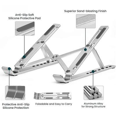 Podstavec, pod notebook, 6 úrovní nastavení výšky, silikonová podložka, broušený hliník, stříbrný