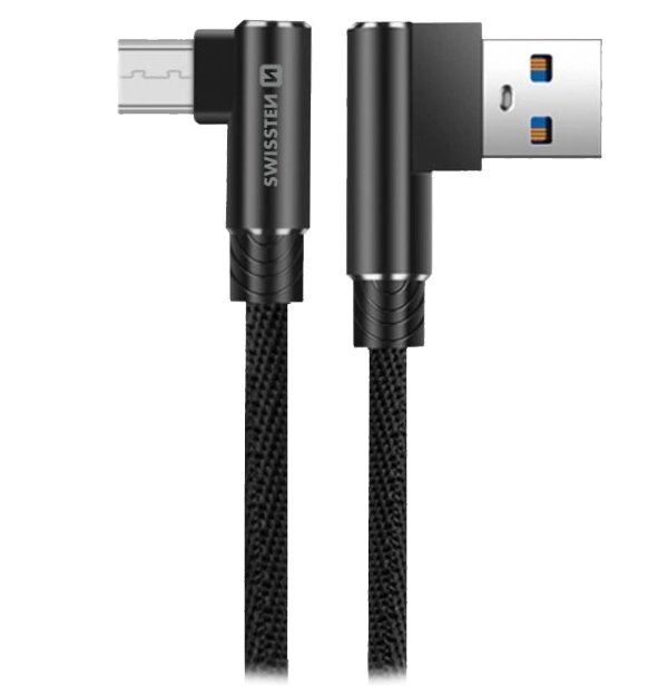 Datový a nabíjecí USB na micro USB kabel s textilním opletením nabízí konektory otočené o 90° do tvaru písmene L pro bezpečnější manipulaci s telefonem během nabíjení. Konektor ve tvaru L snižuje možnost zalomení kabelu nebo poškození konektoru telefonu, díky tomu je praktický i při nabíjení telefonu v držáku v autě nebo při dobíjení v uzavřeném pouzdře z powerbanky. Kabel navíc kromě přenosu dat rychlostí 480 Mb/s podporuje také nabíjení proudem až 3 A.