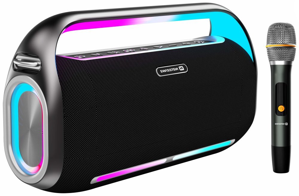 Přenosný reproduktor s výkonem 200 W a barevným LED podsvícením zajistí dostatečné ozvučení vaší párty. Podporuje navíc funkci True Wireless Stereo (TWS), která umožňuje dvěma bezdrátovým reproduktorům vytvářet stereo zvuk a vynásobit tak výkon i hudební zážitek. Hudbu lze přehrávat jak drátově skrze AUX vstup, tak i bezdrátově pomocí technologie Bluetooth. Pokud si párty chcete opravdu užít, můžete využít také bezdrátový mikrofon (součástí balení). Pro rychlé přehrávání z paměťových médií je přítomen USB port. Vestavěná baterie s kapacitou 18 000 mAh zajistí až 13 hodin provozu. Nabíjení je realizováno skrze konektor USB-C, přičemž lze využít i režim powerbanky pro nabíjení vašich zařízení s USB konektorem.