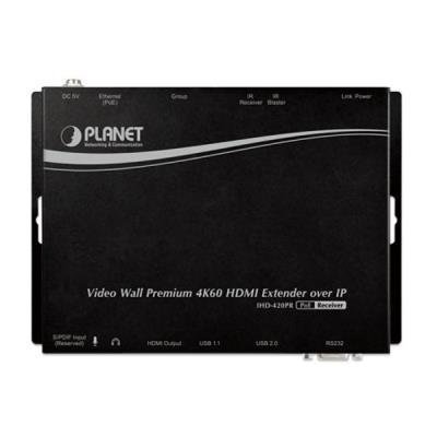 Extender (přijímač) přenášející video v rozlišení až 4K Ultra HD při 60 fps přes síť LAN (ethernet) na vzdálenost až 100 m. Podpora identifikace EDID a ochrany HDCP. Správa utilitou, IR vysílač pro ovládání, přenos USB a RS-232, VESA montáž, napájení PoE nebo adaptérem.