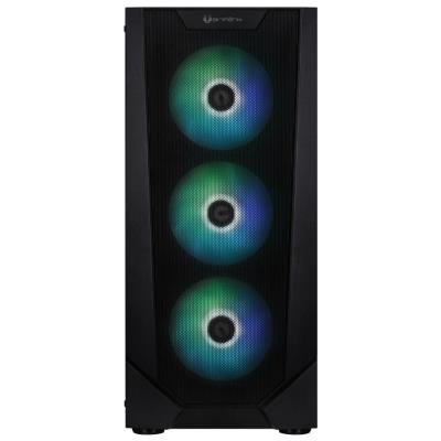 Kompaktní herní počítačová skříň nabízí stylovou prosklenou bočnici, poloprůhledný přední panel a prvotřídní kovovou konstrukci. Skříň je osazena čtyřmi ventilátory o velikosti 120 mm s ARGB podsvícením. Potěší také možnost rozšíření o další 2 ventilátory. Samozřejmostí jsou také prachové filtry. Důmyslné řešení umožňuje pohodlné umístění až 280 mm dlouhého výměníku vodního chlazení na přední straně. Ve skříni je dostatek prostoru pro chladič CPU do výšky až 160 mm a grafickou kartu o délce až 310 mm. Na horním panelu se nachází dva porty USB 2.0, jeden port USB 3.0, sluchátkový výstup a vstup pro mikrofon. Skříň je dodávána bez zdroje.