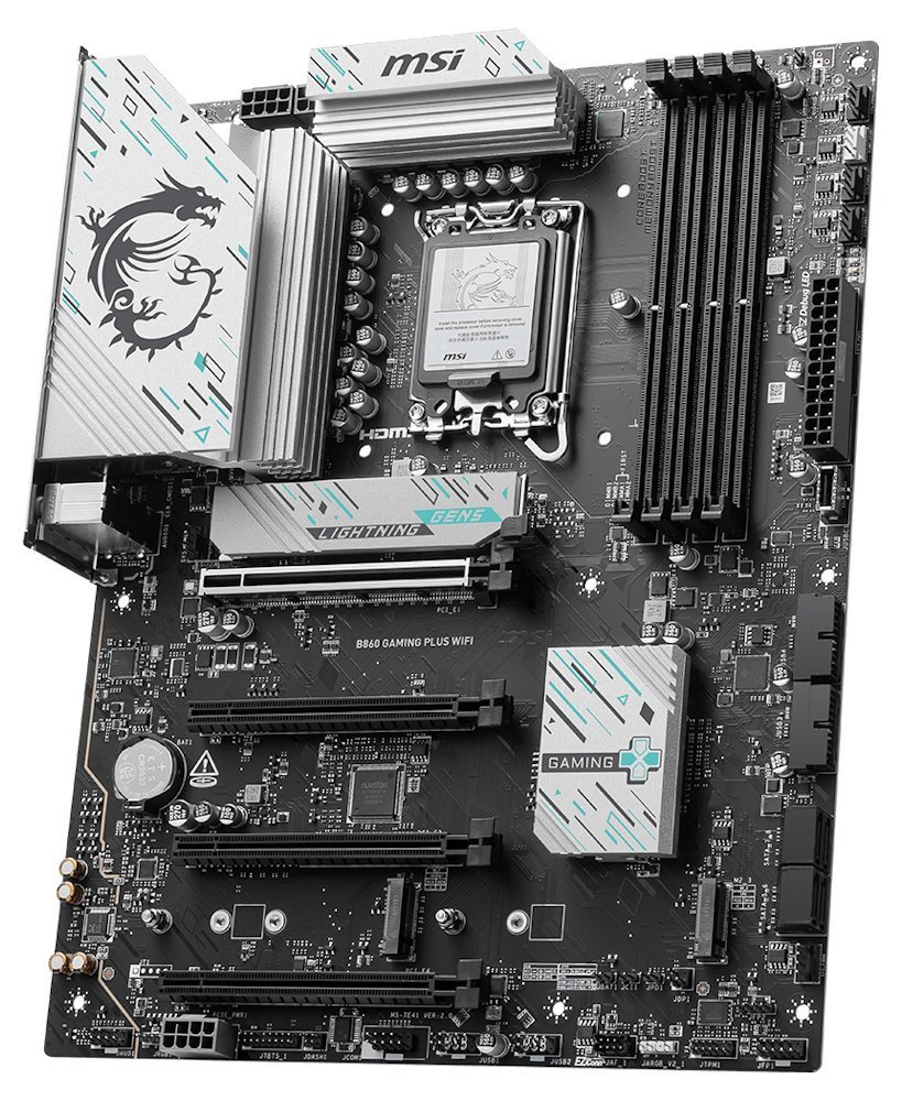 Základní deska MSI B860 GAMING PLUS WIFI podporuje procesory Intel Core Ultra série 2 a nejnovější moduly operační paměti typu DDR5, pro kterou jsou k dispozici 4 volné sloty. Díky tomu je zajištěn vysoký výkon a stabilita i při velmi náročných výpočetních procesech. Pro tyto potřeby je deska vybavena robustním systémem napájení, který umožní plynulý přísun energie k CPU a spolehlivý provoz.