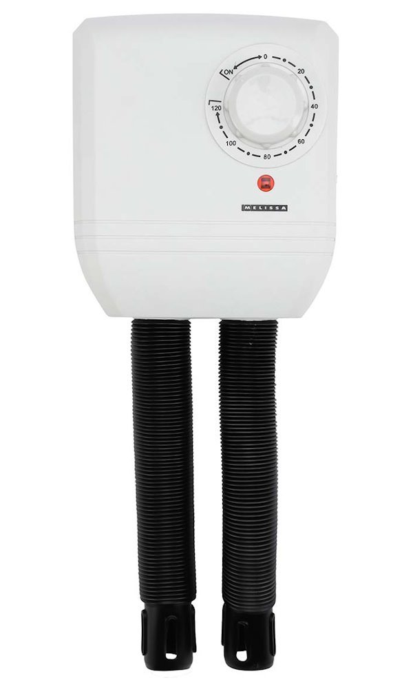 Umožní vám sušit jeden pár bot najednou a díky snadné manipulaci je během okamžiku připraven k použití. Držák je nastavitelný a umožňuje zavěšení na stěnu, kamkoli chcete. Hadice jsou pružné, aby šly vložit hluboko až ke špičce boty. Praktický časovač se o vše postará a po dané době se automaticky vypne. Samozřejmostí je integrovaná ochrana proti přehřátí.