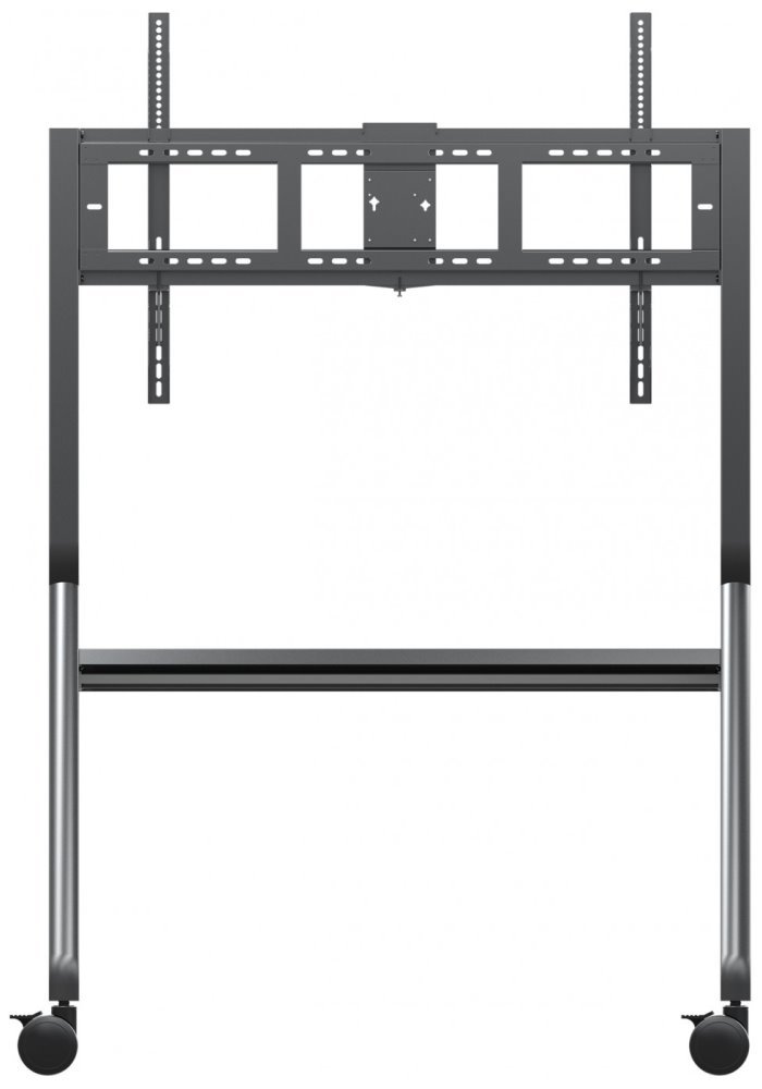 Stojan na kolečkách pro montáž velkoformátového displeje s úhlopříčkou 55" až 105". Moderní design, snadná mobilita a výškově nastavitelná konstrukce umožňuje umístění do jakéhokoli prostoru. Díky 360° tichým kolečkům s rychloupínacími brzdami nabízí tento stojan bezproblémovou, stabilní a bezpečnou mobilitu prezentačních displejů z jedné místnosti do druhé. Dotyková pera a další příslušenství je možné umístit na odkládací přihrádku. Maximální zatížení stojanu je 120 kg.