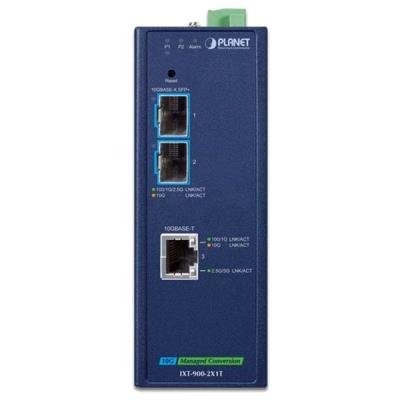 Konvertor, průmyslový, 1× 10G RJ-45, 2× 10G SFP+, 9–48VDC, 24VAC, IP40, -40 až +75 °C, DIN lišta, ESD, management