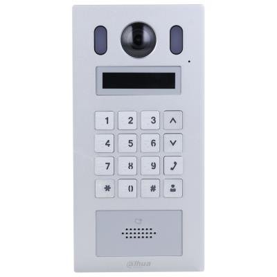 Dveřní stanice pro multiúčastnickou instalaci s přímou tlačítkovou volbou pomocí klávesnice s číslovkami v Braillově písmu. Barevná kamera, CMOS 2Mpix 1/2,9", WDR 120 dB, mikrofon a reproduktor, audio vstup, 1× alarm vstup, 1× alarm výstup, 1× Wiegand, 1× RS-485, napájecí výstup 12 V (600 mA), alarm proti neoprávněnému zásahu (Tamper Alarm). Odemknutí pomocí kódu nebo Mifare - RFID karty (13,56 MHz). Hliníkový kryt, 2,3" OLED displej, venkovní provedení (IP65 + IK08), zapuštěná nebo povrchová montáž. Rozvod po běžné Cat5 TCP/IP síti + podpora PoE (802.3af/at).
