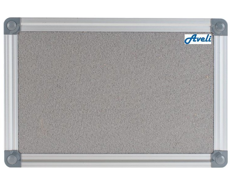 Textilní nástěnka v šedé barvě s hliníkovým rámem vhodná do prezentačních prostor, kanceláří, firem i na úřady.