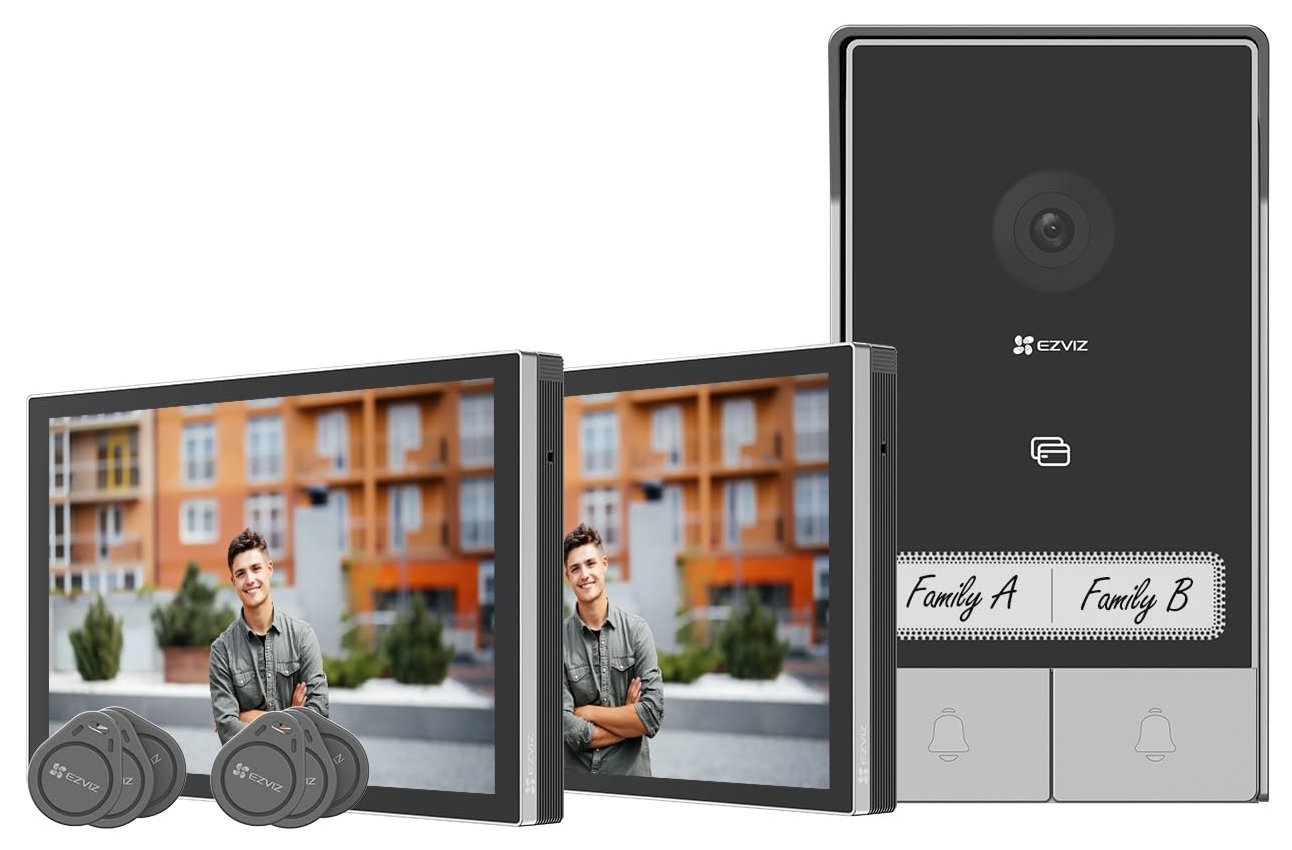 Interkom EZVIZ HP7 2 je ideální pro využití v obytných budovách. Set je vhodný pro rodinné domy, vily nebo dvě rodiny, které sdílejí jeden hlavní vchod a chtějí si zůstat nablízku a současně zachovat soukromí. Systém obsahuje dva vnitřní monitory, aby uživatelé mohou rychle a jednoduše reagovat na návštěvníky prohlížet videa nebo kontrolovat upozornění v případě detekce.