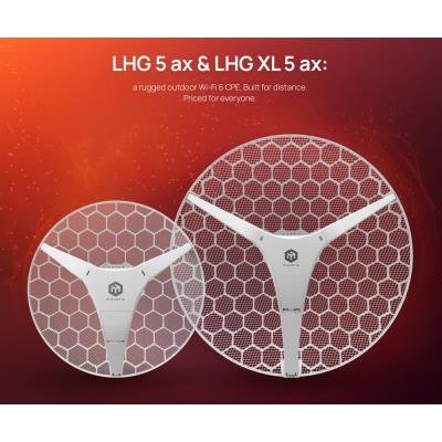 MikroTik LHG 5 ax je výkonné venkovní Wi-Fi 6 CPE zařízení určené pro vytváření stabilních bezdrátových spojů na velké vzdálenosti. Díky pokročilému standardu 802.11ax nabízí vyšší propustnost, nižší latenci a lepší odolnost vůči rušení než předchozí generace. K dispozici ve dvou verzích - standardní model s 24,5dBi anténou pro spoje do 20 km a XL verze s 27dBi anténou pro spoje až do 30 km v ideálních podmínkách.