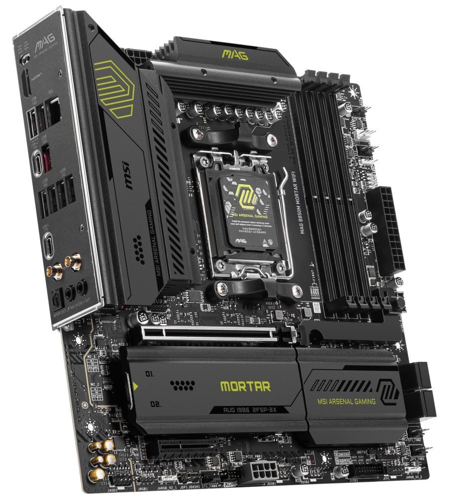 Základní deska MSI MAG B850M MORTAR WIFI podporuje procesory AMD Ryzen série 7000, 8000 a 9000, je navržena pro stavbu moderních univerzálních PC sestav, práci s multimédii, případně hraní her. Čtveřice paměťových slotů pro operační paměť typu DDR5 podporuje kapacitu až 256 GB. Konstrukce se vyznačuje rozšířeným chladičem, který umožňuje ještě lepší chlazení a stabilizaci výkonu vícejádrových procesorů. Provedení z kvalitních materiálů a odolné komponenty dávají vzniknout opravdu masivní základní desce, která je připravena na neutuchající pracovní tempo a souboje na virtuálních bojištích.