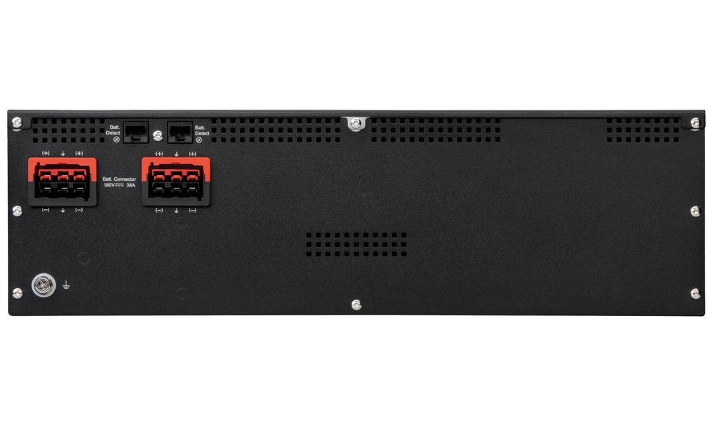 Bateriový modul je dodáván se vším potřebným příslušenstvím pro okamžité připojení k UPS systému. Součástí balení je EBM napájecí kabel (0,33 m), EBM detekční kabel, rack-montážní sada s držáky a posuvnými lištami, spojovací deska, stručný návod k instalaci a bezpečnostní pokyny.