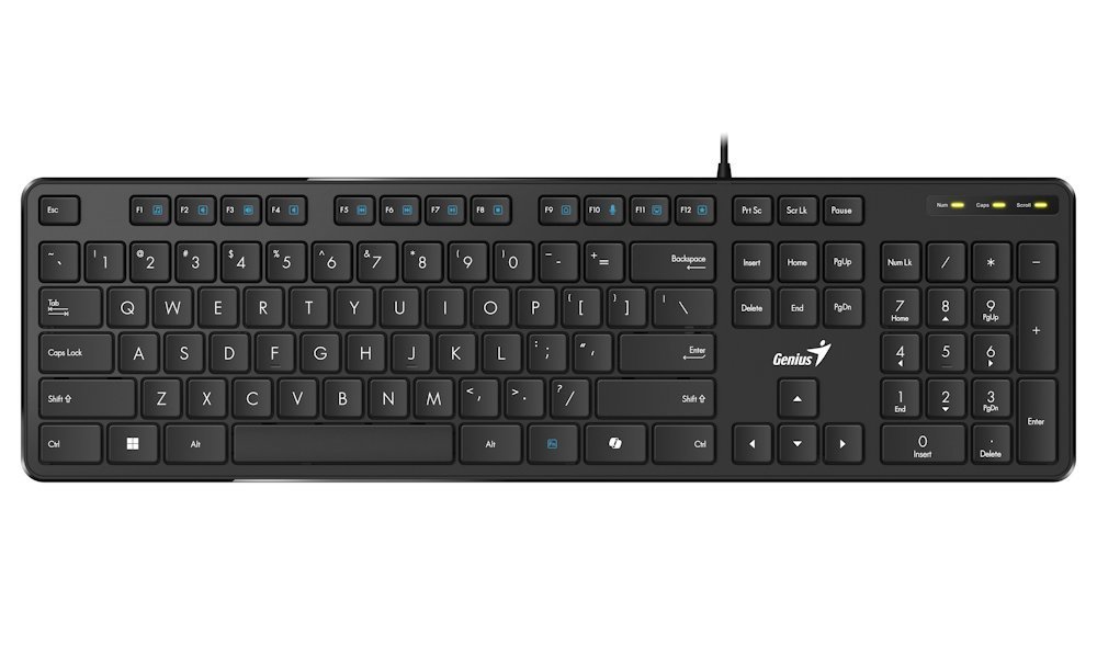 Klávesnice Genius Slimstar M200 Copilot, na kterou se můžete spolehnout každý den ve firemní kanceláři. Jednoduchý design s nízkoprofilovými klávesami zajišťuje příjemný stisk a tichý chod. Součástí je numerická část, díky čemuž je zadávání číselných znaků rychlé a jednoduché. Klávesnice Genius Slimstar M200 Copilot přináší také jednoduché řešení pro podporu produktivity.