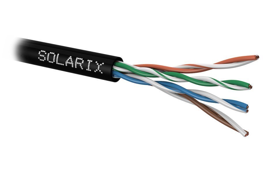 PE plášť poskytuje zvýšenou odolnost proti nepřízni počasí a má dlouhou životnost i v náročných podmínkách. Venkovní kabel Solarix bez problémů splňuje a rovněž převyšuje požadavky definované v mezinárodních standardech TIA/EIA 568, EN 50173 a ISO 11801 pro Cat5e. Je tedy vhodný i pro provoz těch nejnáročnějších protokolů určených pro strukturovanou kabeláž (např. Gigabit Ethernet). Plášť venkovního kabelu Solarix má černou barvu, jeho teplotní odolnost se pohybuje v rozmezí od -20 do +70 °C. Kabel je dodáván ve vysoce odolném třívrstvém leštěném kartónovém boxu (vždy barevně odlišeném podle typu kabelu), na kterém jsou uvedeny všechny nezbytné produktové informace, včetně čárových kódů, výrobní šarže, popisu a nejdůležitějších technických parametrů.