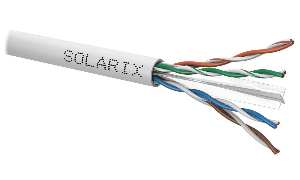 Instalační kabel Solarix SXKD-6-UTP-PVC je spolehlivý nestíněný kabel kategorie 6, který je určený pro provoz ethernetových protokolů, včetně 2.5GBASE-T a 5GBASE-T. Konstrukce kabelu je U/UTP s plastovým křížem, který zajišťuje maximální oddělení párů od sebe po celé délce kabelu. Typ pláště je PVC s třídou reakce na oheň Eca. Vodiče kabelu jsou vyrobeny z kvalitního měděného drátu s čistotou mědi 99,97 %. Kabel bez problémů splňuje požadavky z mezinárodních standardů ISO/IEC 11801, EN 50173 a ANSI/TIA 568.2-D. V případě CPR (nařízení EU č. 305/2011) je kabel testován u nezávislé laboratoře FORCE TECHNOLOGY v systému posuzování vlastností AVCP 3. Stejně jako ostatní kabely Solarix, je i kabel SXKD-6-UTP-PVC značen metráží po 1 m v rozsahu od 0 do 100 m. Kabel je dodáván ve vysoce odolném třívrstvém leštěném kartónovém boxu, na kterém jsou uvedeny všechny nezbytné produktové informace, včetně čárových kódů, výrobní šarže, popisu a nejdůležitějších technických parametrů.