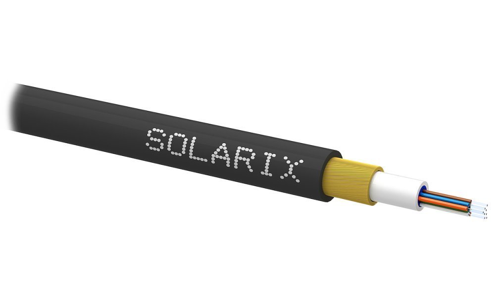 Zafukovací optický kabel MINI Solarix s 8 vlákny singlemode 9/125 a HDPE pláštěm pro snadnou instalaci do mikrotrubiček.