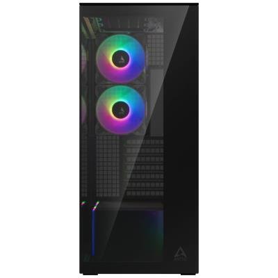 Skříň, Middle tower, bez zdroje, E-ATX, 2× 120mm ARGB + 3× 140mm ARGB ventilátor, USB-C, 2× USB 3.0, průhledná bočnice a přední panel, černá