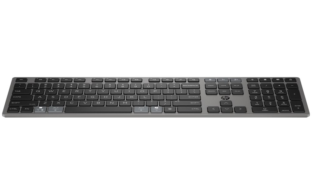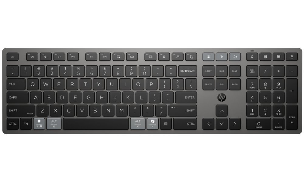 Díky technologii Multi-Device můžete klávesnici snadno přepínat mezi třemi různými zařízeními. Dvě zařízení připojíte přes Bluetooth a třetí pomocí dodávaného HP Unifying Dongle (2,4 GHz). Speciální tlačítko umožňuje okamžité přepínání mezi zařízeními.
