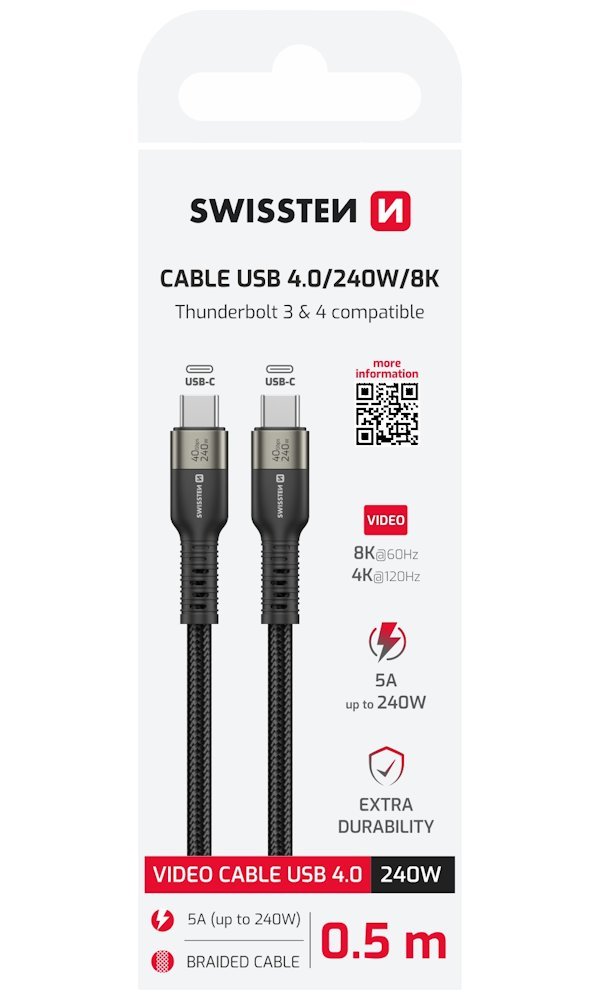 SWISSTEN USB-C 4.0 240 W 8K 0,5 m černý