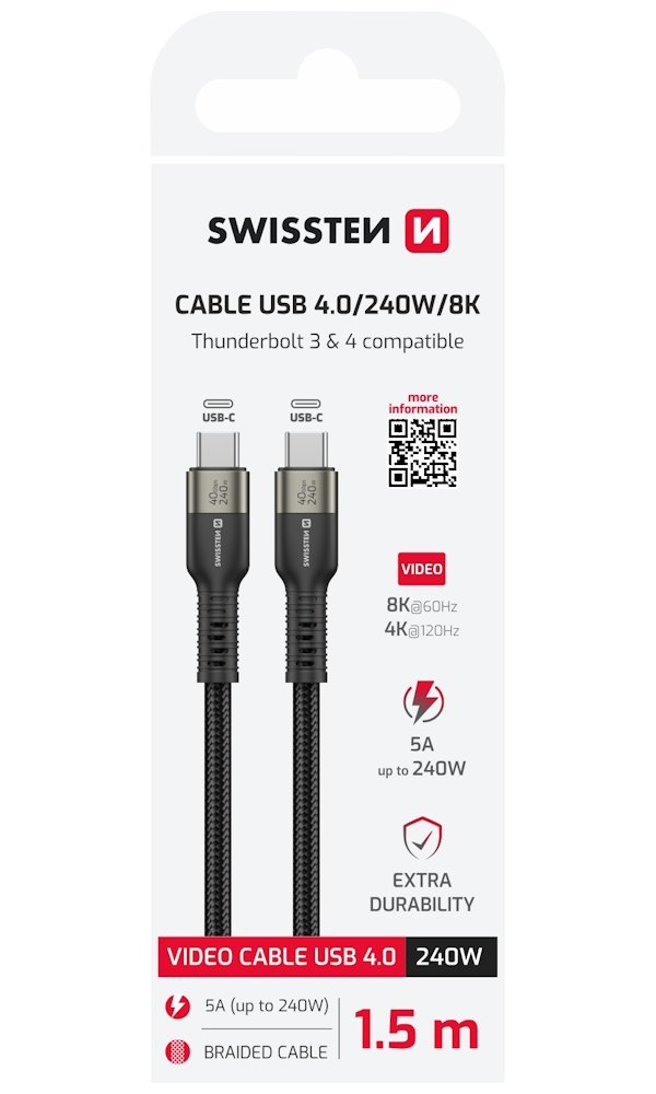 SWISSTEN USB-C 4.0 240 W 8K 1,5 m černý
