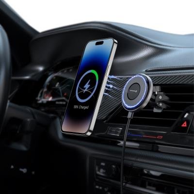 Držák, do auta, magnetický, do ventilace, s bezdrátovým nabíjením, výkon až 15W, kompatibilní s MagSafe, USB-C, černý
