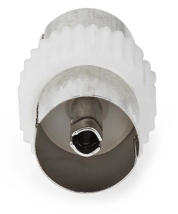 Adaptér, satelitní/anténní, IEC (koax) zásuvka - IEC (koax) zásuvka, 75ohmů, přímý, poniklované konektory, bílý