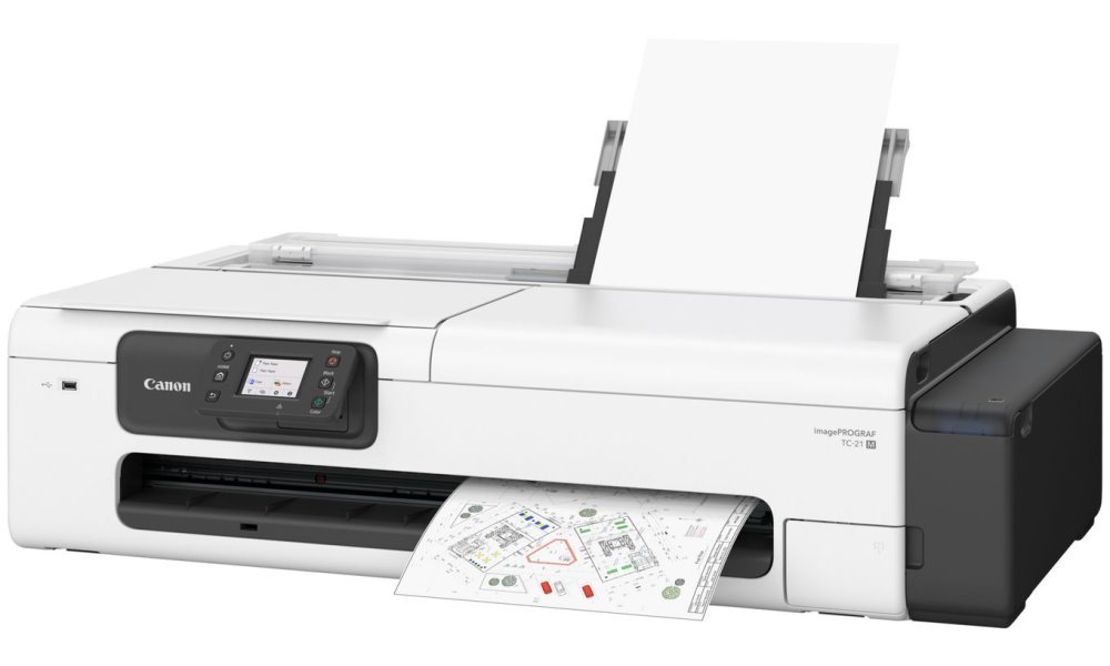 Kompaktní multifunkční zařízení kombinuje velkoformátový 4barevný inkoustový tisk s vestavěným plochým CIS skenerem pro formát A4. Technologie Canon Bubble Jet s 4352 tryskami a rozlišením 2400 × 1200 DPI zajišťuje profesionální kvalitu výtisků až do formátu A0. Pigmentové inkousty přinášejí sytější barvy a ostřejší obraz oproti předchozímu modelu TC-20M.