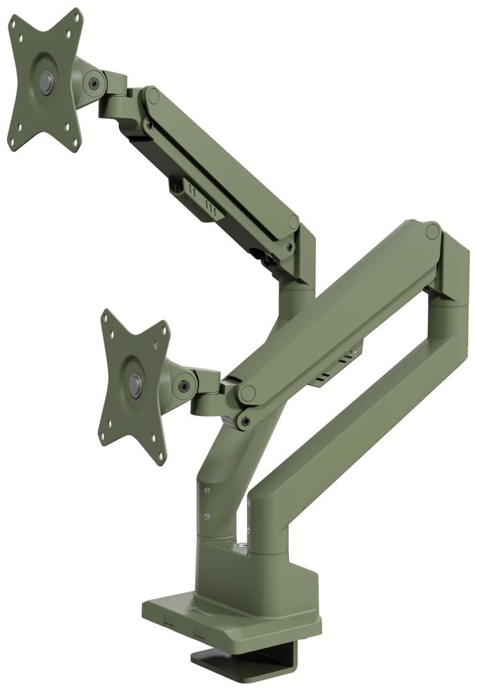 Držák, VESA, stolní, pro 2 monitory, náklon -90°, otáčení 180°, rotace 360°, nosnost 18kg (9kg/monitor), zelený