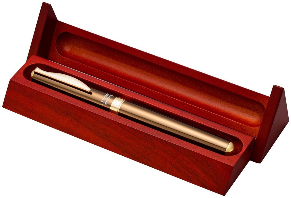 Keramické pero je dodáváno v elegantní dárkové krabičce ze dřeva – perfektní dárek pro každou příležitost.